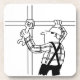 Presente Scaffolder. Ilustração divertida no estilo cartoon de uma Scaffolder com Scaffolding. Porta copos de presente Scaffolder.