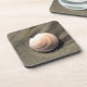 Esta linda imagem de uma concha marítima numa praia arenosa parece excelente numa porta copos de cortiça para você usar.