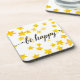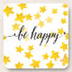 O texto escrito à mão da caligrafia esteja feliz no fundo amarelo das estrelas da aguarela. Design de cartão do vetor. | Bigstock® - todos os direitos reservados.