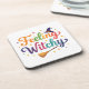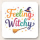 Uma citação colorida fofa Feelin Witchy com chapéu e vassoura. Perfeito para o Halloween.