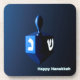 Um sonho modernista, azul metálico contra um fundo escuro e noturno. Duas das letras hebraicas encontradas num sonho, freira e brilho, brilham intensamente. O texto "Happy Hanukkah" também aparece em azul e branco brilhantes.