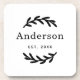 Esta elegante e personalizada montanha-russa de bebidas apresenta galhos de louros de folhas que enquadram um sobrenome da família. Um belo presente para recém-casados ou novos proprietários. As cores de design preto e branco podem ser modificadas para serem coordenadas com o decorador doméstico.