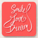 Cartão com elemento design de tipografia desenhado à mão para posters de cartões de saudação e impressão. Sorrir é um sonho de amor com nuvens de corações e sorrir sobre fundo vermelho| Bigstock® - Todos os direitos reservados.