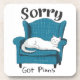 A funny, sarcastic, and colorful design showcases an adorable white cat lounging on a cozy living room chair. The bold black text reads, "Sorry, got plans." This design is available on a wide range of products, making it a perfect gift for cat lovers.