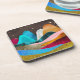A vibrant, textured digital illustration featuring rounded fantasy mountains set against a dark sky full of golden stars. The style is modern and abstract, with a heavy emphasis on color contrast and layered textures.