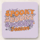 Esta vibrante e divertida design de Halloween comemora a estação assustadora com a frase repetida "Spooky, Spooky, Spooky Season" em fontes ousadas e inspiradas em retrô. As palavras "Spooky" são empilhadas em tons de laranja, pêssego e roxo, criando um efeito visual colorido e dinâmico. A palavra "Estação" é escrita em um roteiro fluente no fundo, ligando o design com um toque de elegância. Ao redor do texto estão elementos charmosos do Halloween como teias de aranha, morcegos, estrelas e minúsculas aranhas, acrescentando uma atmosfera festiva e assustadora. O design inteiro está levemente manchado, dando-lhe um olhar vintage, vestido que acrescenta ao seu encanto.