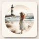 Uma jovem graciosa em um vestido branco fluindo ao longo da costa arenosa, seu chapéu de sol se inclinou contra a brisa enquanto ela olhava em direção a um farol listrado que estava forte contra as ondas. As gramíneas gentis enquadram o primeiro plano enquanto as aves marinhas e um veleiro se movem através do horizonte, acrescentando uma sensação de movimento calmo à paisagem costeira. O estilo de aquarela suave combina romance e serenidade, criando uma cena à beira-mar inspirada no eterno cottagecore que parece nostálgica e sonhadora. A IA gerou trabalho de arte.