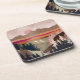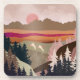 Uma paisagem abstrato com cores e texturas únicas mostrando uma paisagem natural com sol ascensão e dois gansos em tons de laranja, bege, marrom e rosa.