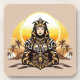"Essa design de evocação apresenta uma figura central adornada em ornamentado, possivelmente antiga trajada de inspiração egípcia ou do Oriente Médio, colocada contra o pano de fundo de um sol estilizado, dunas do deserto e palmeiras. A figura tem uma expressão serena e sabedora, sugerindo sabedoria ou discernimento místico. A paleta de cores é dominada por dourados quentes e negros contrastantes. Esta design é versátil para produtos que visam uma estética mística, espiritual ou historicamente inspirada. Imaginem-no em acessórios de meditação, impressões artísticos, roupas de estilo boêmio ou branding para serviços holísticos."