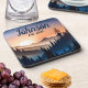 Este conjunto de portas copos com paisagem de montanha em cores de pôr do sol é o sotaque perfeito para qualquer cabine ou alojamento e pode ser personalizado com o nome e a data desejados.