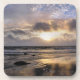 Um design fotográfico de um pôr do sol macio do sonho sobre o mar e refletido na água da praia. País de Gales.