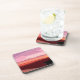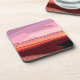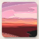 Um design de arte abstrato do pôr do sol em cores rosa, lilás, preta, vermelha e pêssego.
