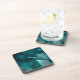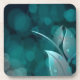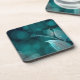 Teal é a cor - fundo bokeh com folhas prateadas e lacrimogêneas que têm gotas de orvalho sobre elas, a partir da névoa noturna