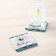 This beverage coaster features a simple, modern design with a bold white background that offers a clean and contemporary look.