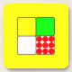 Amarelo. Verde. Branca. Bolinhas vermelha.