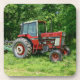 Um trator internacional mais velho com um reboque da semeação/propagador senta-se em um campo perto do bosque justo, Missouri. Esta é minha foto que foi transformada em uma pintura. Procurando mais impressões ou produtos? Sinta livre visitar minha loja: http://www.zazzle.com/timelessmomentsphtgy