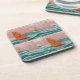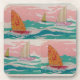 Três veleiros navegando pela água do oceano azul-esverdeada antes de bonito céus cor-de-rosa, todos pintados à mão como trabalho de arte de mídia mista, fazer estas portas copos como um assunto de conversa mais interessante ao servir a seus amigos e família suas bebidas favoritas.
