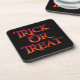 Letras cor de laranja vibrantes tradicionais saudando "Trick or Tratat" no Halloween.
