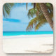 Areia serena e tranquila praia de areia branca tropical. Águas calmas de turquesa e algumas palmeiras para sombra. O lugar perfeito para descansar e relaxar.