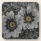 A pair of delicate daisies take centre stage in this striking selective‑colour photograph. The petals and surrounding foliage are rendered in smooth grayscale, creating a calm, monochrome backdrop. At the heart of each bloom, vivid yellow‑orange centres burst with warmth and detail, forming a dramatic contrast that immediately draws the eye. Fine water droplets rest on the petals and leaves, adding texture and a sense of freshness. The combination of soft tones and vibrant colour accents gives the artwork a modern, elegant feel that suits home décor, nature lovers, and contemporary art collections.