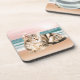 Porta-copo Um gato riscado mais bonito sentado na praia com o