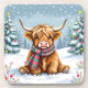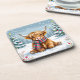 Esta bela porta copos sazonal de Natal que tem uma ilustração do estilo aquarela de um bebê Highland Cow sentado num campo de neve balbuciosa durante um dia de inverno com um pano de fundo de pinheiros decorados em férias.