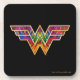 Mulher Maravilha (1984) | Logótipo da Mulher Maravilha aparado em ouro, com textura colorida de caleidoscópio.