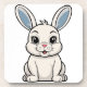 Vector illustration of a smiling white bunny with large, sweet eyes, long, blue ears, and a pink nose, in a cartoon style, on a black background. Suitable as a logo or mascot.