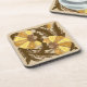 Portas copos de uma safra William Morris Jacobean, padrão de azulejo floral, melhorado digitalmente e colorido, em tons de castanho castanho-bravo, bege e-escuro, acentuado com ouro mostarda profundo e amarelo-mostarda