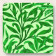 Portas copos em um padrão antigo William Morris de ramos estilizados salgados, em verde esmeralda médio a escuro, em um fundo verde-hortelã claro
