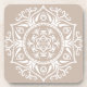 Esta mandala branca senta-se sobre um fundo castanho-claro ou castanho-claro. A cor é macia e natural. Em algumas luzes pode parecer uma cinza quente. Parte da Coleção Rosenn Mandala.