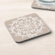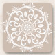 Esta mandala branca senta-se sobre um fundo castanho-claro ou castanho-claro. A cor é macia e natural. Em algumas luzes pode parecer uma cinza quente. Parte da coleção Payon Mandala.