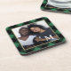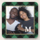 A porta copos de Natal rustica apresenta sua foto personalizada e monograma em branco com um padrão clássico de feriado de xadrez verde.