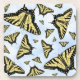 This design is of black and yellow Western Swallowtail butterflies, some of the most beautiful large butterflies in the world, floating on a blue sky with puffy white couds. My original painting is based on photographs I took in my own butterfly-friendly garden in the Southwest. You can customize this design by removing or changing the background if desired.