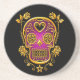 Características deste design impressionantes um o dia do crânio inoperante do açúcar em um fundo preto puro. As linhas e os padrões de ponto intrincados que decoram o crânio são uma cor amarela dourada quando o interior for uma violeta profunda. Quatro rosas cercam o crânio com as videiras delicadas que fluem para baixo a uma estrela de cinco pontos na base do teste padrão. Um grande coração senta-se no meio da testa com redemoinhos fluidos de cada lado. Este design bonito do crânio do açúcar faz uma porta copos do divertimento e do na moda.