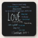 Esta porta copos que atrativa as linhas ajustadas das características de 1 13:4 "amor dos Corinthians são pacientes, amor é amável…" colocado aleatòria através da porta copos