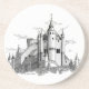 Reprodução de caneta e desenho de tinta estampados de Alcazar - castelo na Espanha. Arte original de John A. Muir. (tinta preta)