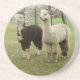 Uma alpaca preta e branca (smoking) e uma alpaca de cinza se posam juntas nesta adorável porta copos de bebida