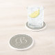 Porta copos com uma borda de monograma de cinza de alumínio redondo com um sotaque de ponto branco. Personalize com seu monograma usando o modelo fácil. A cor da fonte, o estilo da fonte e o tamanho da fonte são personalizáveis. A maneira perfeita de proteger os móveis.
