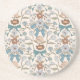 Porta copos boho e rusticidade com ilustração desenhada à mão de arcos e flores em azul.