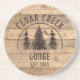 Porta copos de arenito personalizada com uma prancha rústica de madeira e árvores florestais cênicas design com seu texto personalizado. Ideal para uma casa de férias alugada, cabana familiar, casa de lago ou alojamento de montanha. ASSISTÊNCIA: para obter ajuda com a modificação ou personalização do design, alteração de cor, redimensionamento ou transferência do design para outro produto, entre em contato com o designer ANTES DE ENCOMENDAR, por meio da guia MENSAGEM de bate-papo Zazzle ou por e-mail em makeitaboutyoustore@gmail.com.
