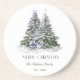 Esta elegante porta copos de Natal apresenta lindas árvores de Natal roxas e verdes, pintadas com ornamentos de vidro e cercadas por presentes envoltos. O ornamento também inclui a mensagem MERRY CHRISTMAS em uma fonte elegante. Personalize o ornamento adicionando seu nome de família e o ano.