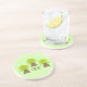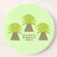 Esta incrível porta copos de arenito apresenta uma imagem gráfica de três árvores que se assemelham a palmeiras com grandes frentes verdes de folhas e um tronco de árvore marrom resistente. Há uma mensagem em texto marrom para parecer solo debaixo das árvores. A mensagem diz Feliz Dia da Terra.