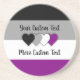 Sandstone coaster with the asexuality pride flag with little hearts in the center of the design. Black, gray, white, and magenta/purple flag of the ace pride movement; with an editable text field for your name or message