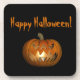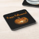 Esta porta copos apresenta uma abóbora esculpida com um rosto assustador e a saudação, "Feliz Dia das Bruxas" em laranja. Perfeito para as festas de Halloween.