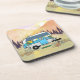Um Reboque Azul perto da floresta ao pôr do sol traz à tona lembranças de acampamento nessas portas copos de plástico-cortiça-duro. Dê-os como presentes aos seus amigos RV e traga um sorriso!