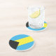 Guarde suas bebidas tropicais na piscina com uma porta copos com a bandeira das Ilhas Bahamas. Um triângulo preto com água-marinha e bandas amarelas. O preto simboliza a força. O aquamarino é para o Mar Caribe que rodeia as ilhas, e o amarelo é para a areia ouro de suas praias.