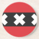 A bandeira consiste em três listras horizontais vermelhas, pretas e vermelho e três cruzes de St Andrew branco.