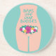 As portas copos de pedra do Protest Choice apresentam a ilustração do corpo da mulher com flores e o texto "bane nossos corpos" em fundo aqua.