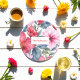 Porta copos Sandstone Padrão de Cereja de Fruta Vermelha Azul com Pedra Negra com Aromas de Água e Padrão de Cereja, Use a opção personalizar esta modelo para alterar o texto